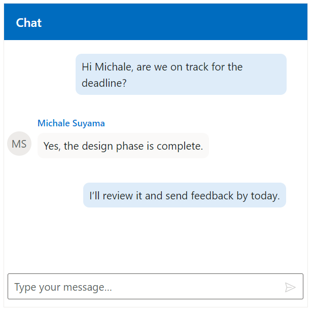 <e-chatui-message text="@message.Text" author="@message.Author"></e-chatui-message>