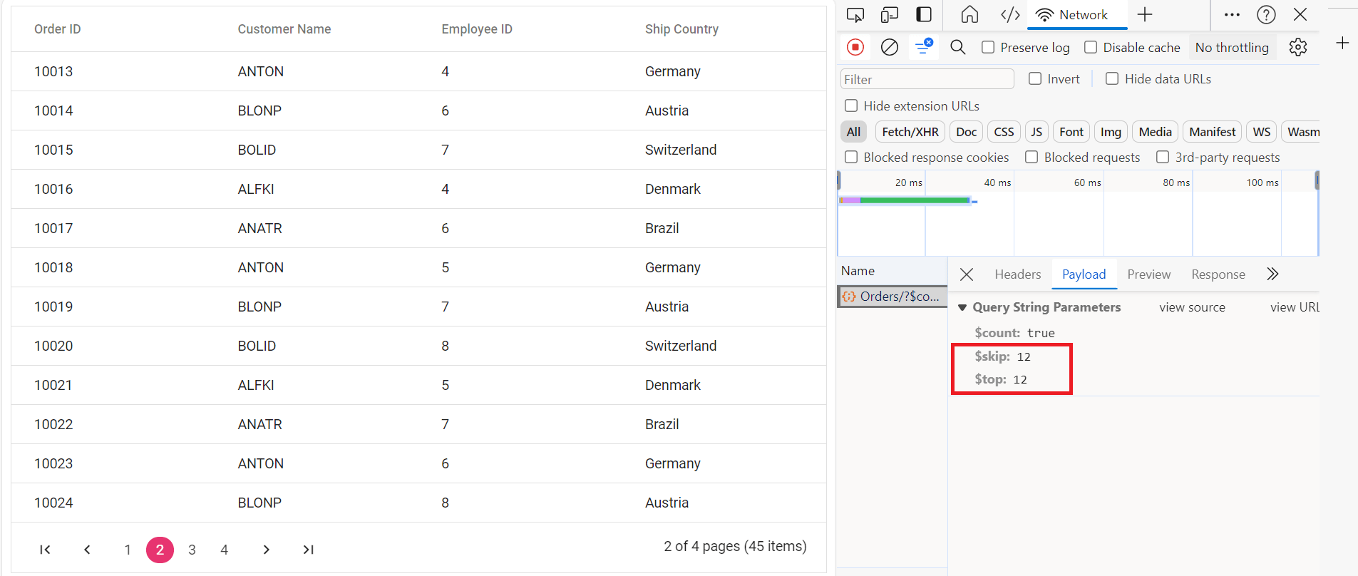 @Html.EJS().Grid("Grid").DataSource(dm => dm.Url("https://localhost:xxxx/odata/orders").Adaptor("ODataV4Adaptor")).Columns(col =>