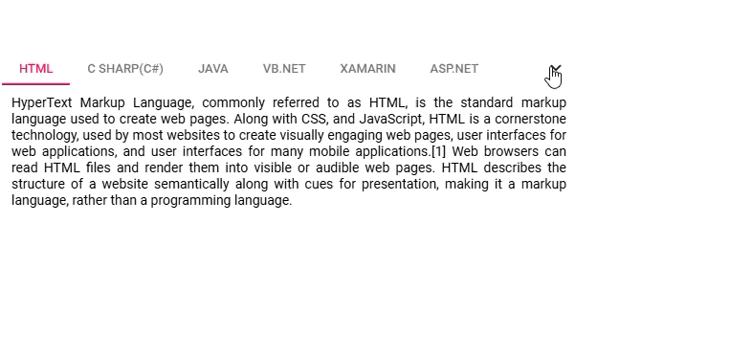 - The right and left navigation arrows are added at the start and end of the Tab header, allowing the user to navigate towards overflowed items in the Tab header.