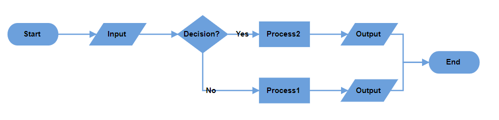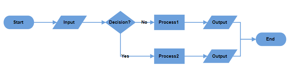 The decision symbol produces two output branches: a Yes branch and a No branch. Configure custom text values to determine branch classification using the yesBranchValues property of the flowchartLayoutSettings class, it will be considered a Yes branch. Similarly, if the connector text value matches any value in the noBranchValues.