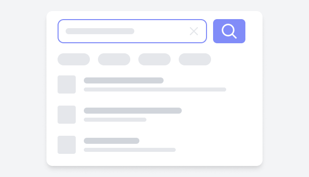 The AI search UI block enables intelligent, context-aware search functionality. A search box, list box, filters, auto-suggestions, and result cards work together to provide fast, accurate results by leveraging AI capabilities.