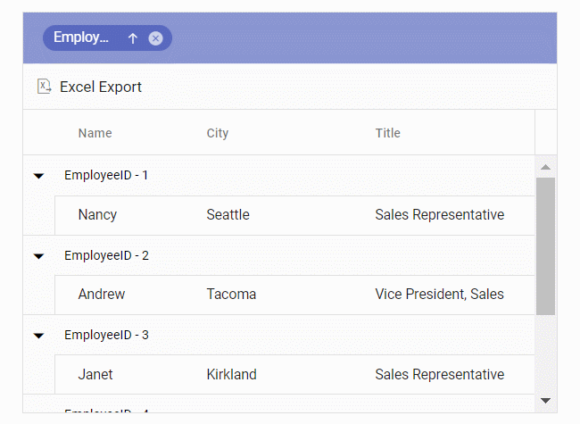 The Excel export feature enables exporting of Grid with a caption template to an Excel document.